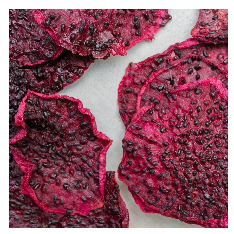 Rebanadas de pitaya (fruta de dragón) secas de primera calidad, sin azúcar agregada, bocadillo saludable totalmente natural para niños, adultos y familias