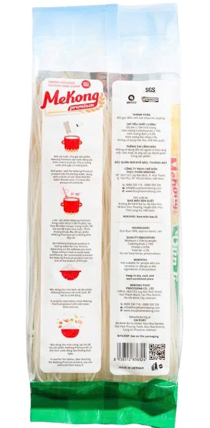 Contenido:Fideos de Arroz Secos Mekong Premium