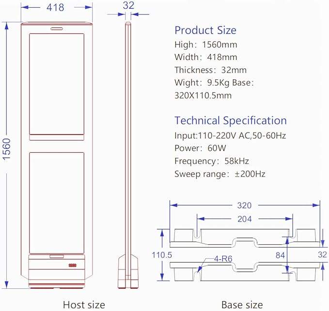 Sistema de Seguridad EAS Premium para Comercios con Puerta Antirrobo AM de 58KMz para Bibliotecas y Tiendas de Ropa