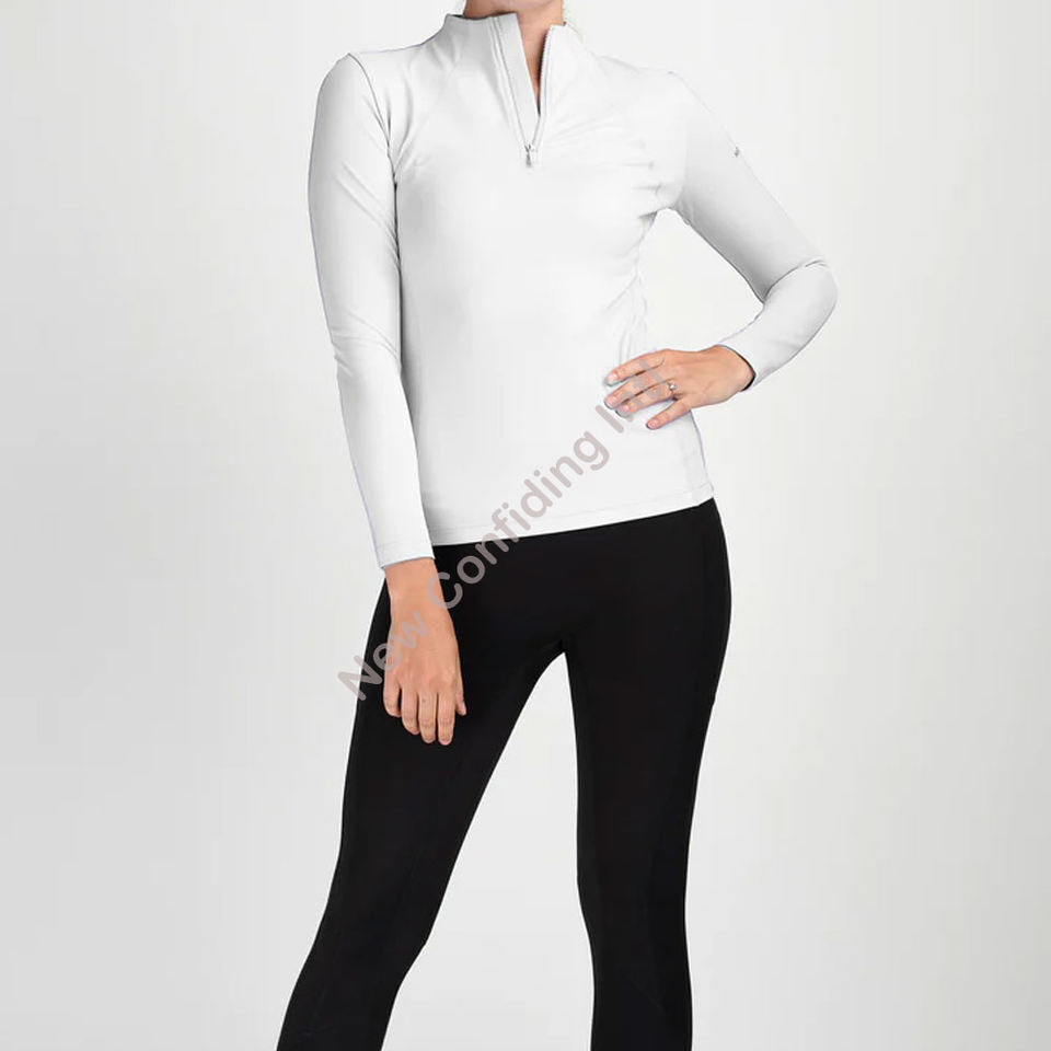 Edición Premium Logotipo personalizado Ropa ecuestre Manga larga Media cremallera OEM Equitación Capa base Tops para la colección de mujeres