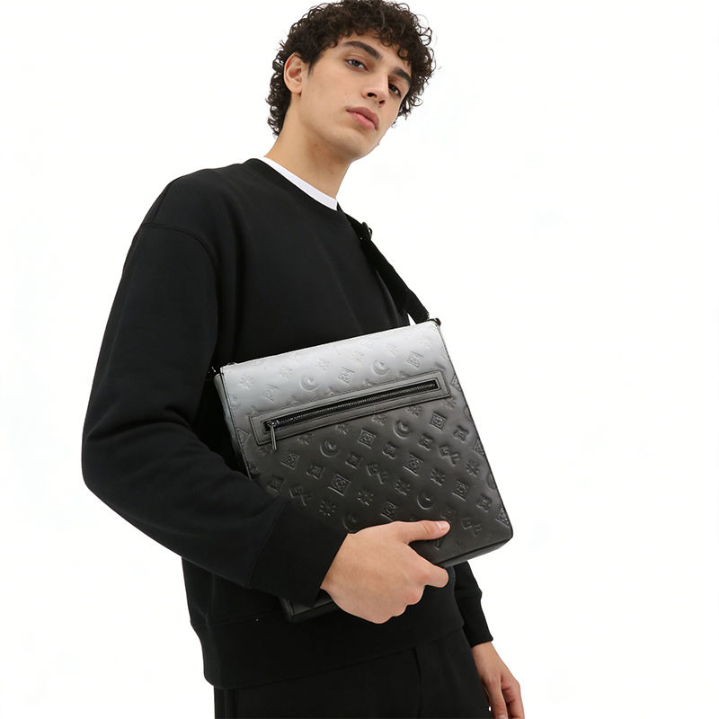 Bolso de Hombro de Cuero Repujado Premium, Diseño Degradado, Bolso Bandolera, Bolso Mensajero de Negocios a la Moda