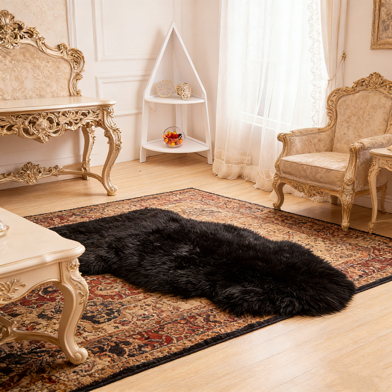 Alfombra de Piel de Oveja Genuina de Primera Calidad, Suave y Cómoda, para Decoración del Hogar, Sofá, Cama