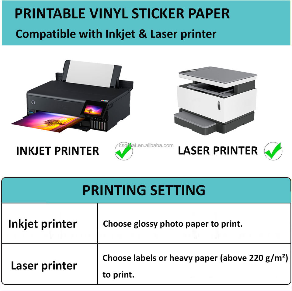 Etiqueta adhesiva brillante Premium fuerte adherente resistente al agua A4 vinilo imprimible para Pegatinas de funda de teléfono DIY
