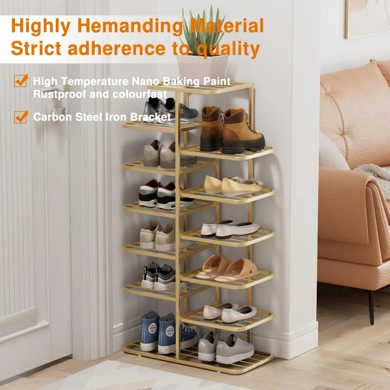Zapatero Esquinero Dorado Premium de Múltiples Niveles, Organizador de Gran Capacidad que Ahorra Espacio, Estructura Resistente, Elegante Unidad de Almacenamiento y Exhibición para la Entrada