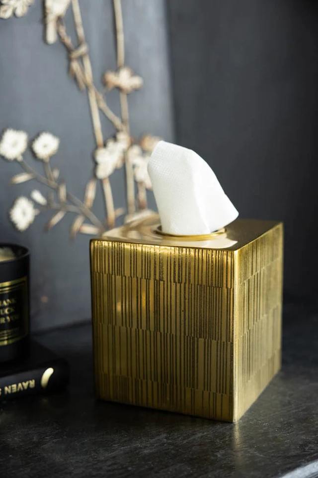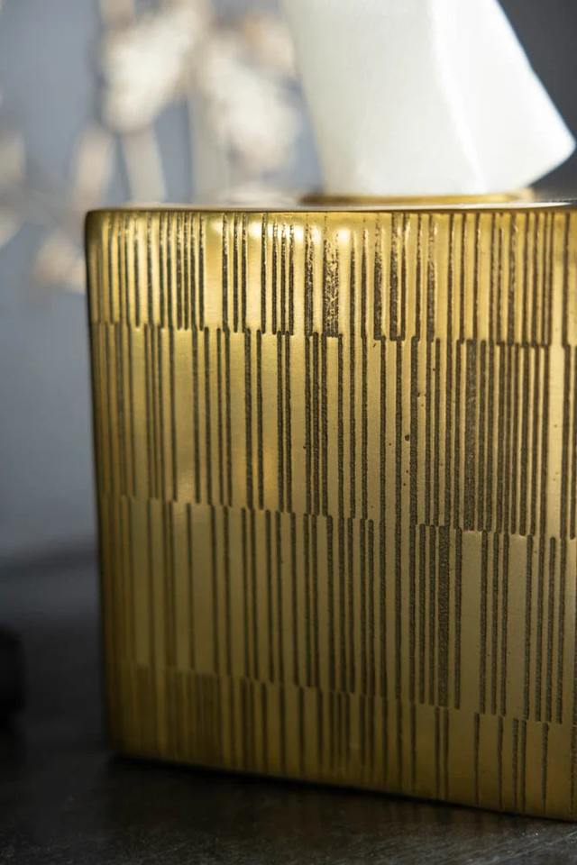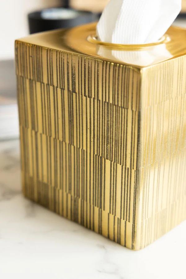 Caja de pañuelos con acabado dorado de primera calidad, elegante organizador de servilletas para mesa, ideal para la tocador del baño y la decoración de la mesa central.