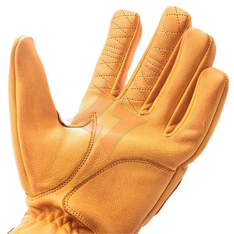 Guantes Cortos Clásicos de Motocicleta de Cuero Genuino Amarillo Dorado Premium, Unisex, Duraderos, Impermeables, para Carreras de Autos y Conducción