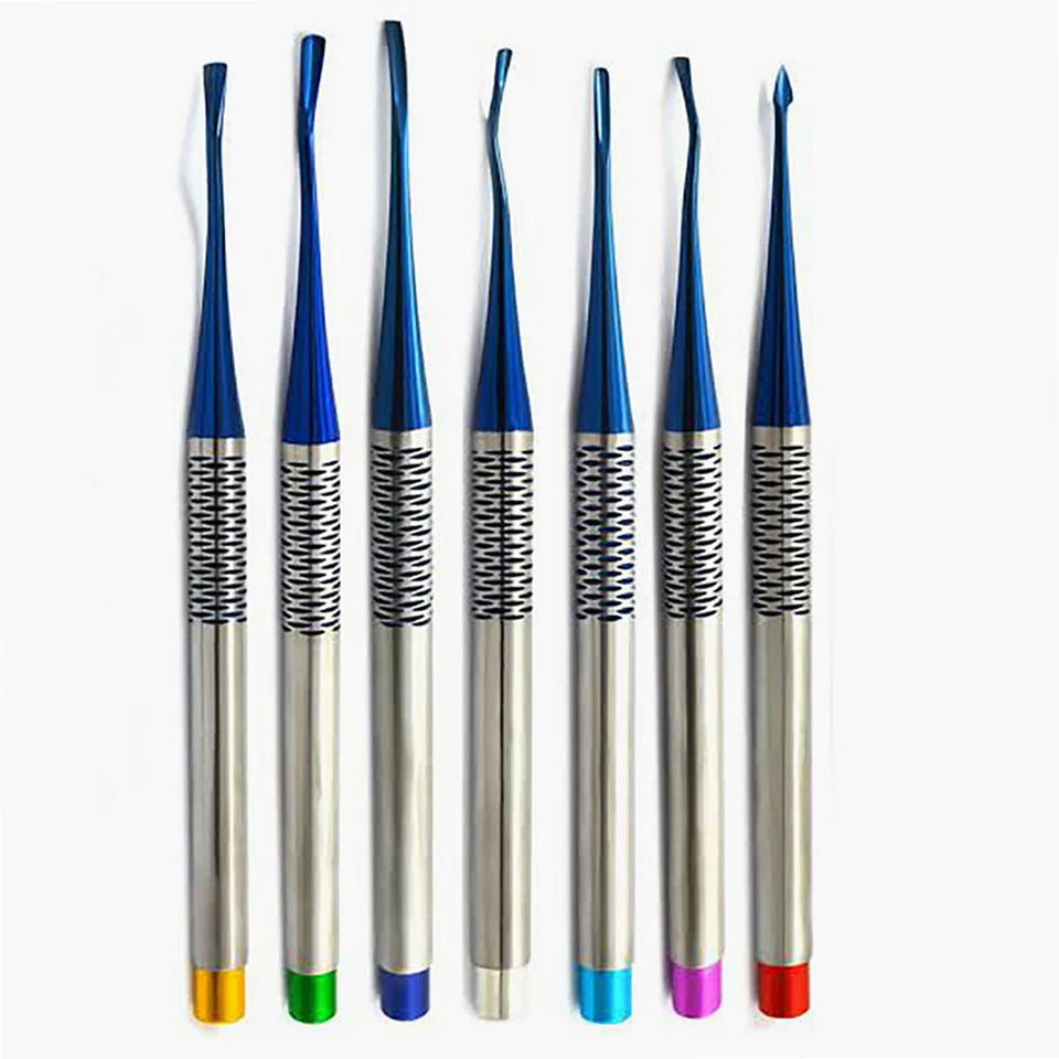 Elevadores de Raíz Dentales Manuales de Grado Premium, Periótomos Precisos Ergonómicos de Acero Inoxidable con Puntas Azules, Juego de 7 Piezas