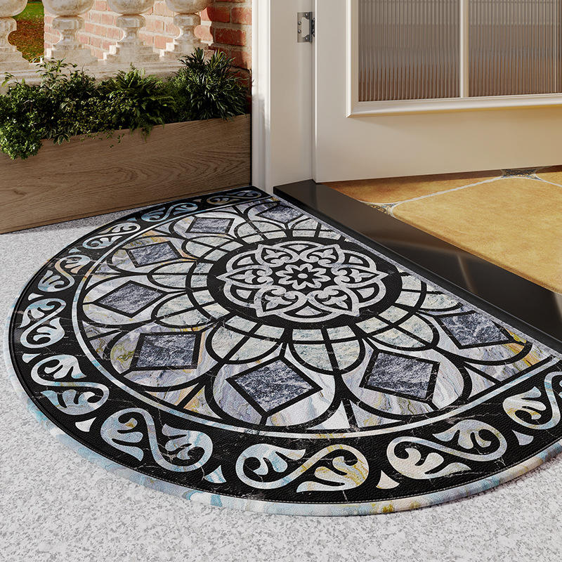 Tapete de Entrada Premium Semicircular con Patrón de Medallón, Antideslizante, de Fibra de Poliéster, para la Entrada del Hogar, Sala de Estar