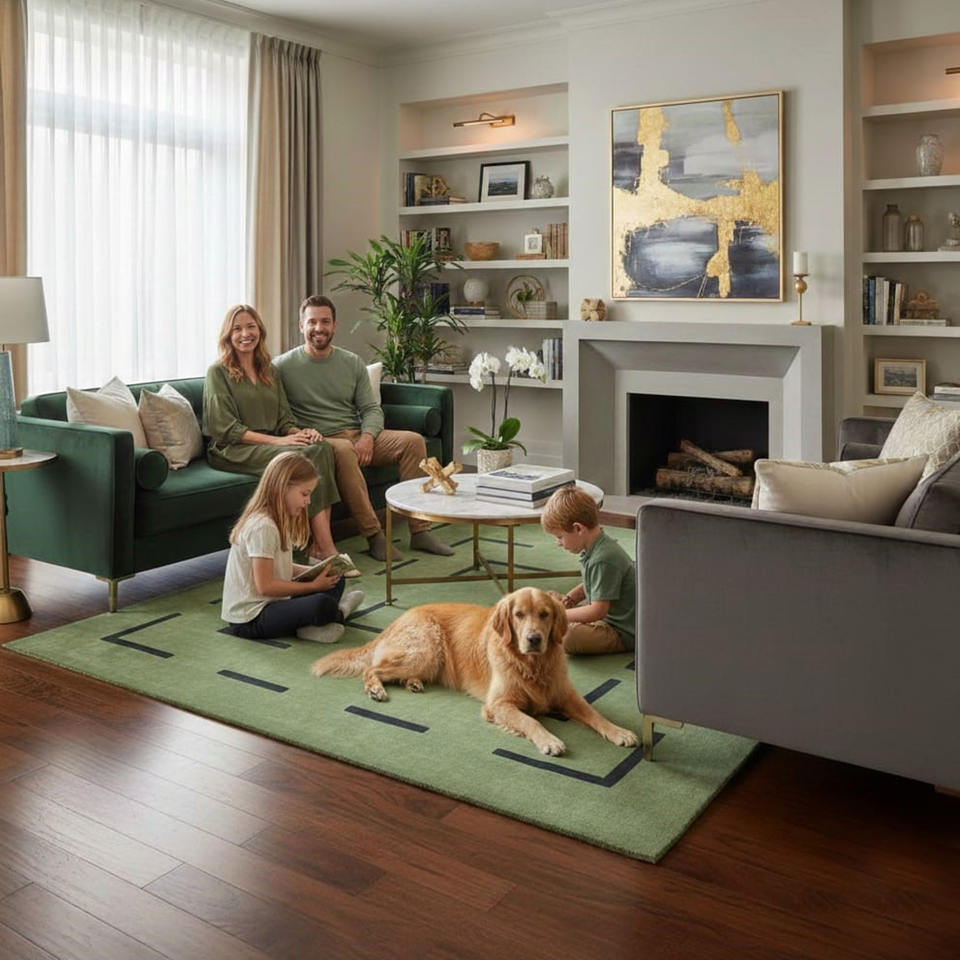 Alfombra de Lana Hecha a Mano de Primera Calidad, Diseño de Líneas Contemporáneas en Verde, Alfombra para Sala de Estar, Alfombra de Tamaño Personalizado