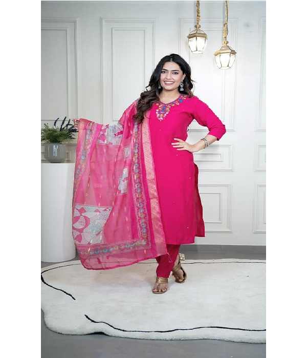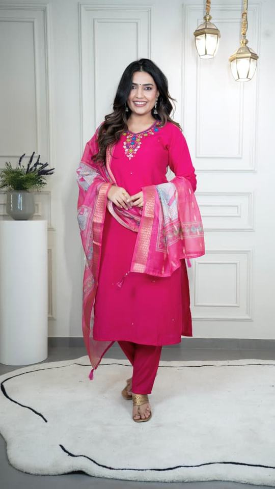 Premium Hand Work Indian Traditional Designer Kurta Set Roman Silk Kurti Pant Dupatta para mujeres Party Ocasiones