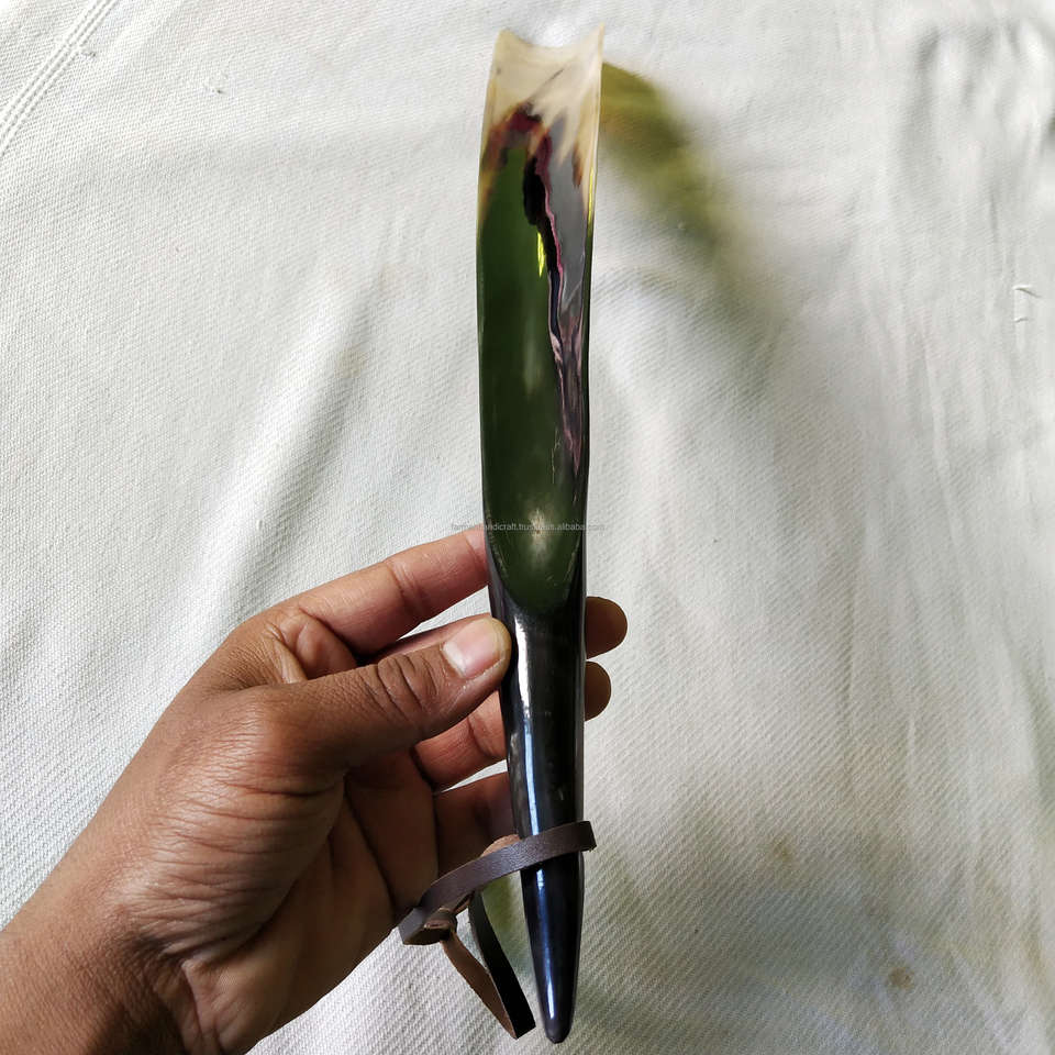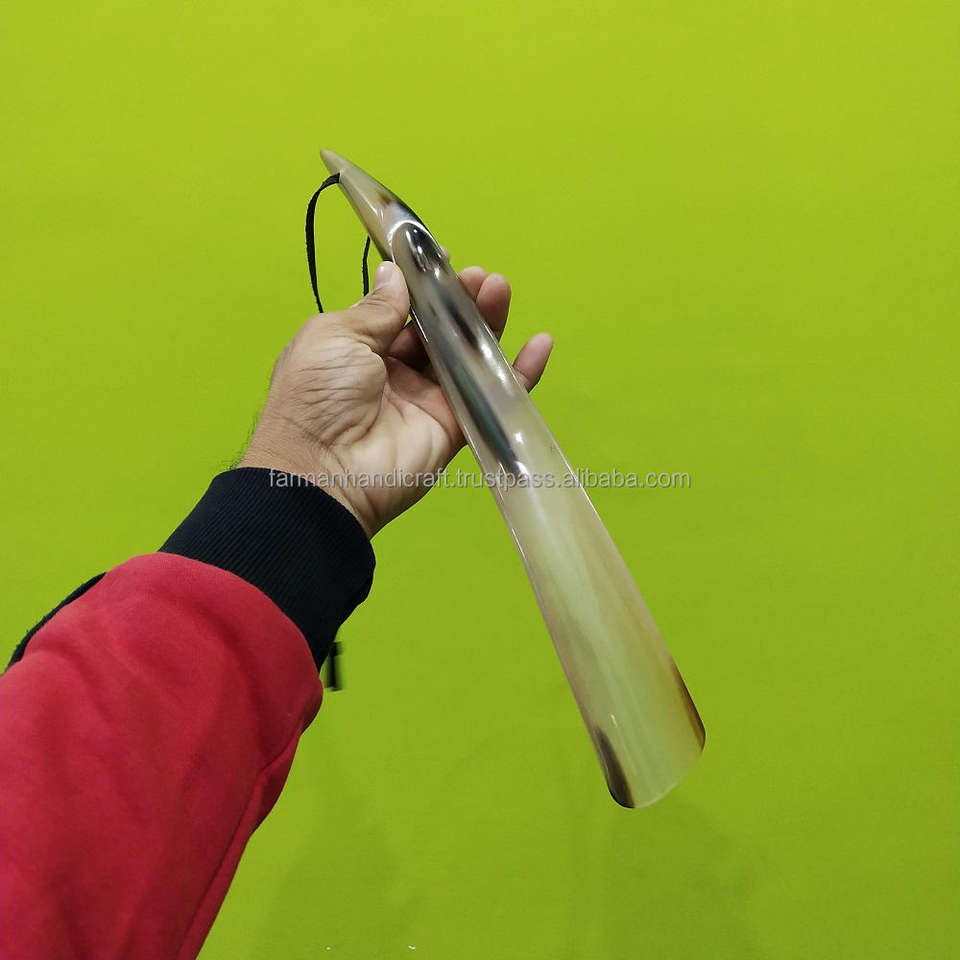 Cuchara para zapatos premium hecha a mano de cuerno de vaca y buey de 16 pulgadas con mango largo y correa de cuero auténtico para facilitar el calzado al mejor precio