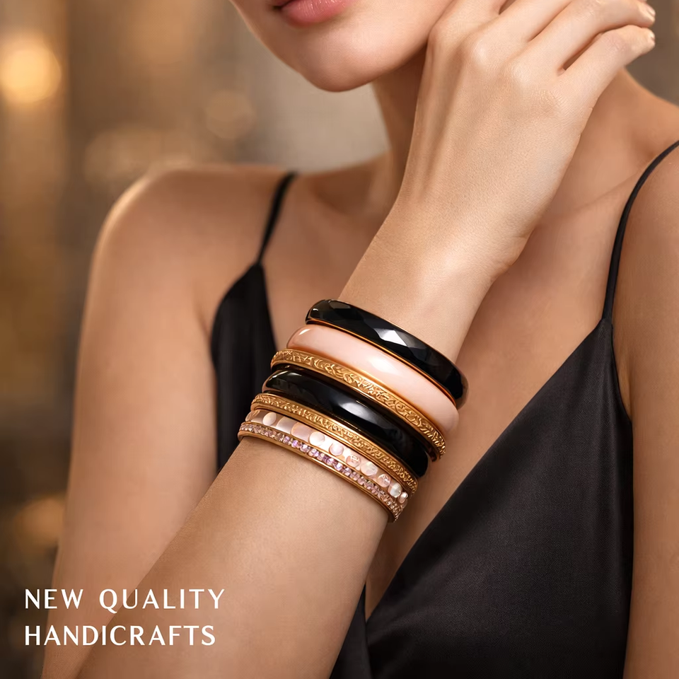 Juego de Brazaletes de Hueso y Latón Hechos a Mano de Primera Calidad, Joyería Artística para Mujer, Estilo Cristiano Moderno, Venta al Por Mayor