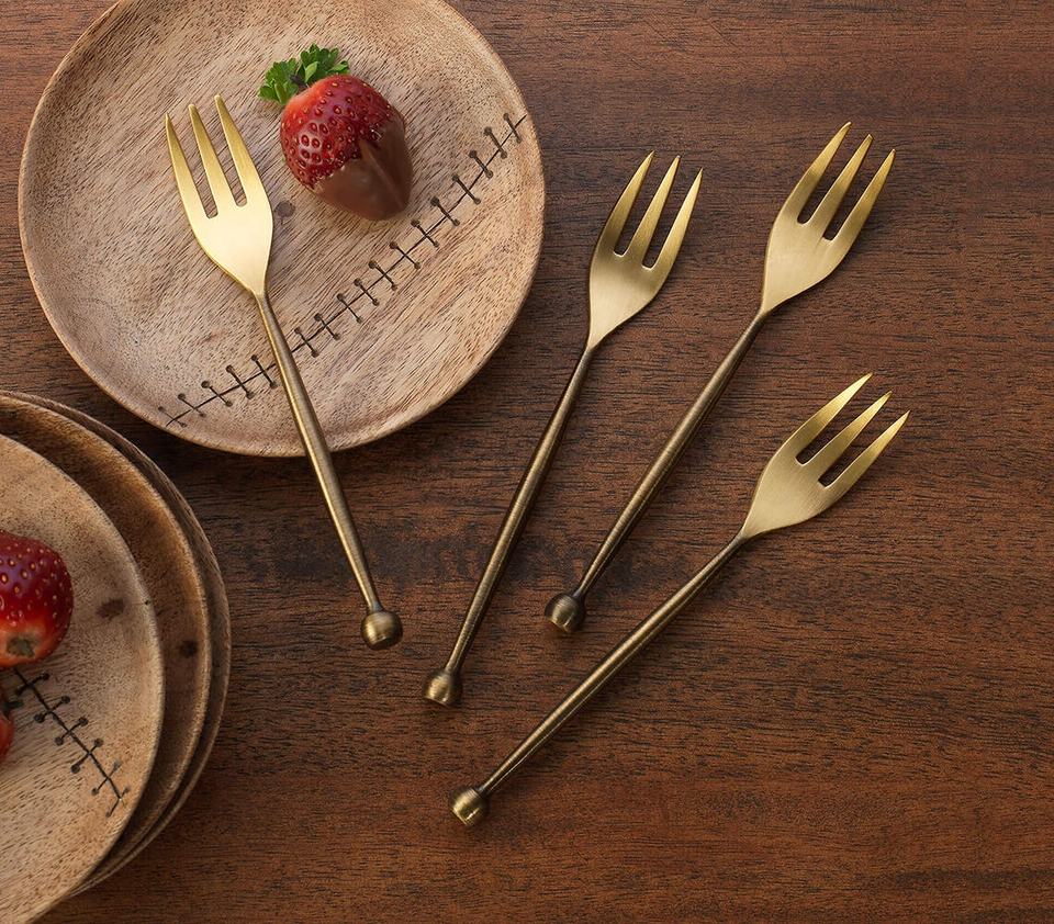 Juego de 4 piezas de tenedor de fruta dorado de latón hecho a mano de primera calidad Fabricante mayorista venta directa de fábrica