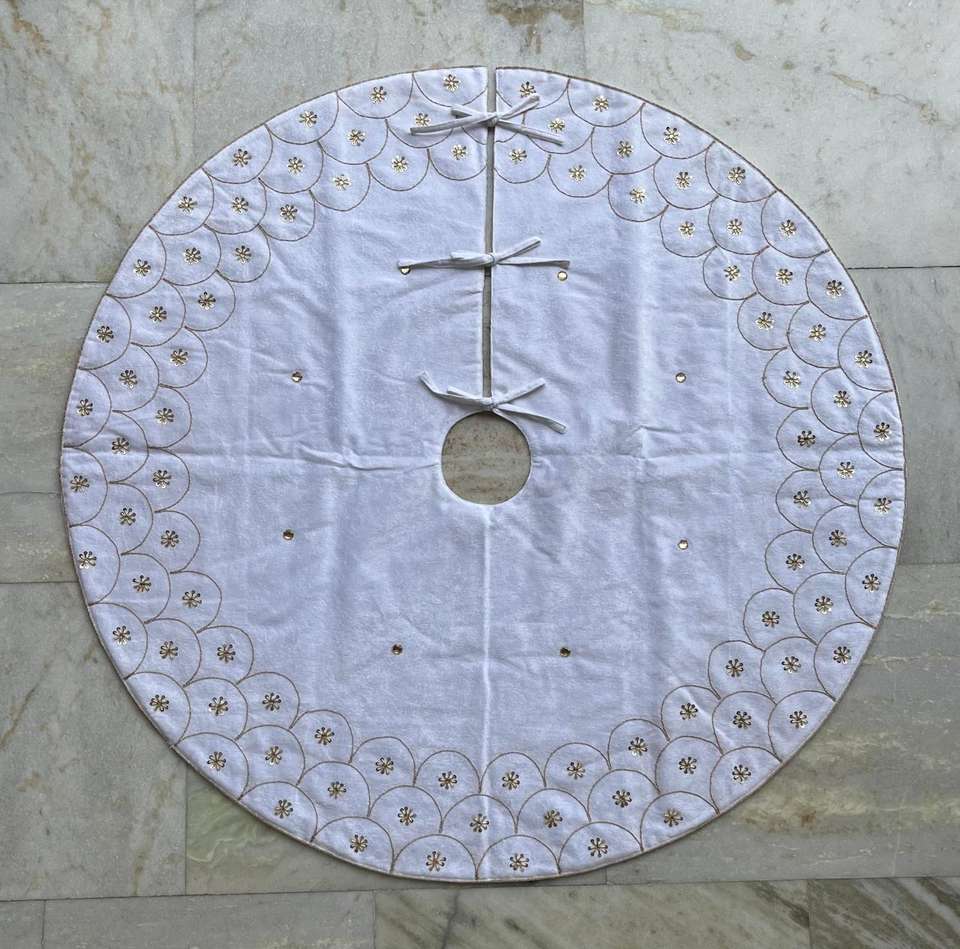 Falda de árbol de Navidad hecha a mano de primera calidad con cuentas decorativas que agrega brillo y clase a la decoración elegante del hogar de vacaciones