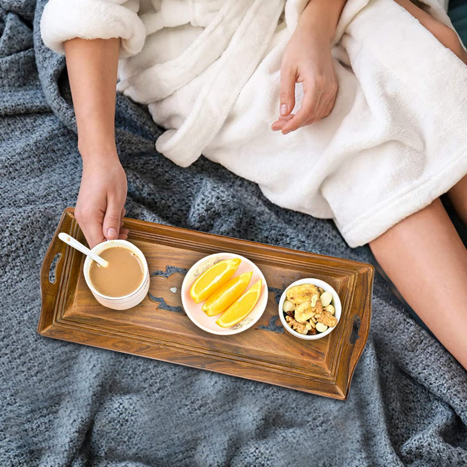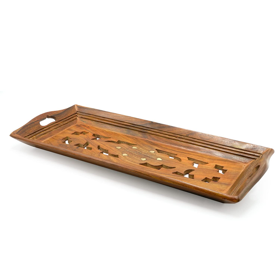Juego de 3 bandejas rectangulares clásicas de madera hechas a mano de primera calidad, hechas de madera de Sheesham para cocina, comedor y vajilla, India