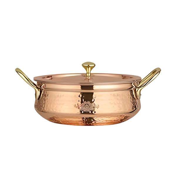 Olla de Cobre Hecha a Mano de Primera Calidad con Tapa, Cacerola de Cobre Vintage con Asas de Latón para Cocina y Restaurante