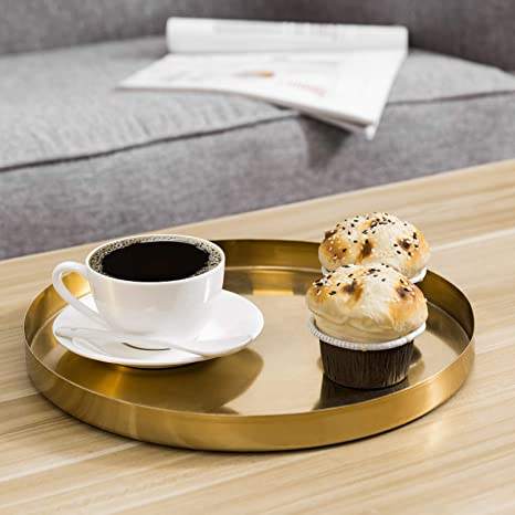 Bandeja de Servicio de Cobre Hecha a Mano de Primera Calidad con Acabado Pulido Antiguo, Bandeja de Servicio Redonda Decorativa para Mesa