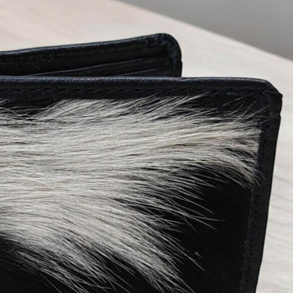 Cartera de cuero vacuno premium hecha a mano para hombre, cartera de cuero con pelo, cartera delgada plegable, cuero genuino natural