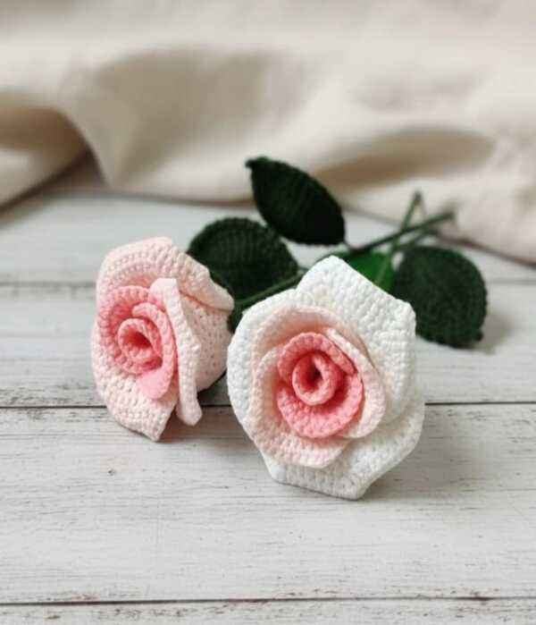 Ramo de Flores de Ganchillo Hecho a Mano de Primera Calidad, Rosas de Hilo Suave, Flores Artificiales Perfectas para Decoración de Centros de Mesa, Manualidades con Tela