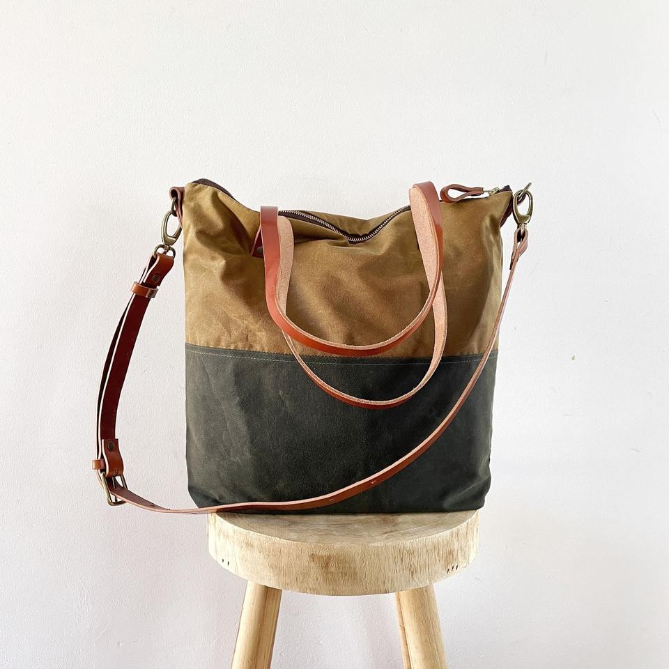 Bolso de mano de lona encerada duradero hecho a mano de primera calidad con correas de cuero elegante gran oficina trabajo escuela Shopper 2017