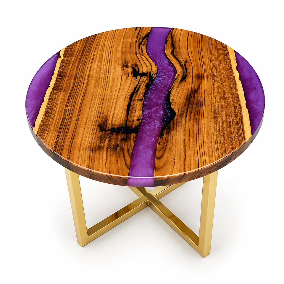Mesa de Centro de Resina Epoxi Pulida de Estilo Oceánico Moderno, Hecha a Mano, con Base de Acero Dorado y Madera Sólida, Mueble de Lujo para Sala de Estar