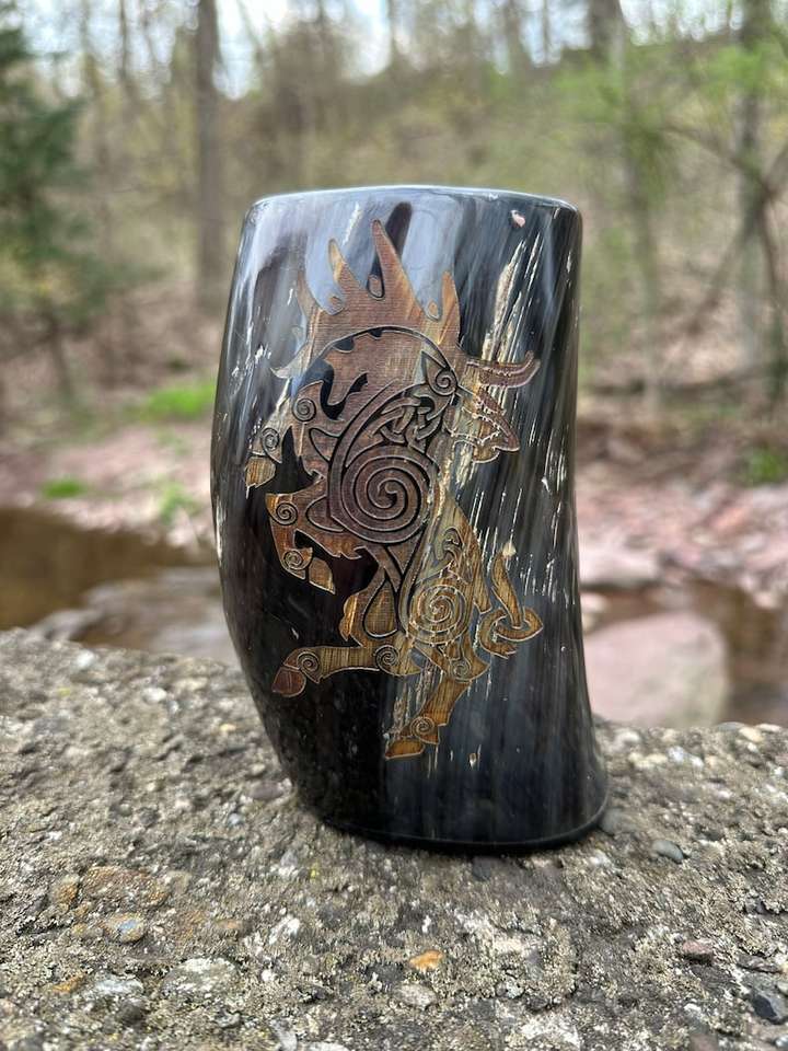 Taza de cuerno hecha a mano de primera calidad, taza ecológica natural rústica, vajilla duradera, perfecta para café, té, whisky, cocina, hogar,
