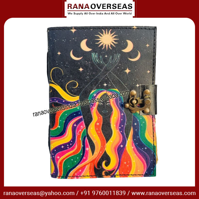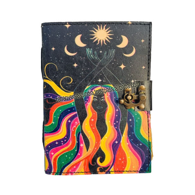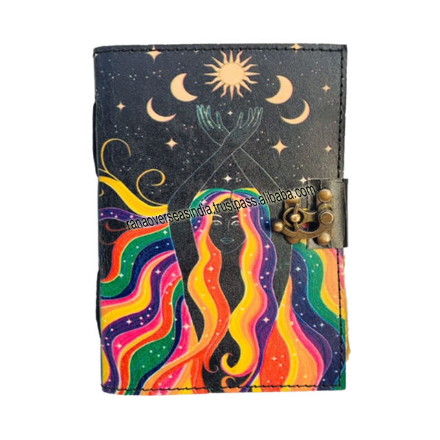 Cuaderno de escritura diario de cuero hecho a mano Premium Sun & Moon impreso Sketchbook gran regalo para hombres