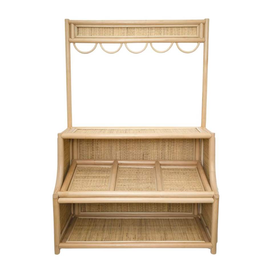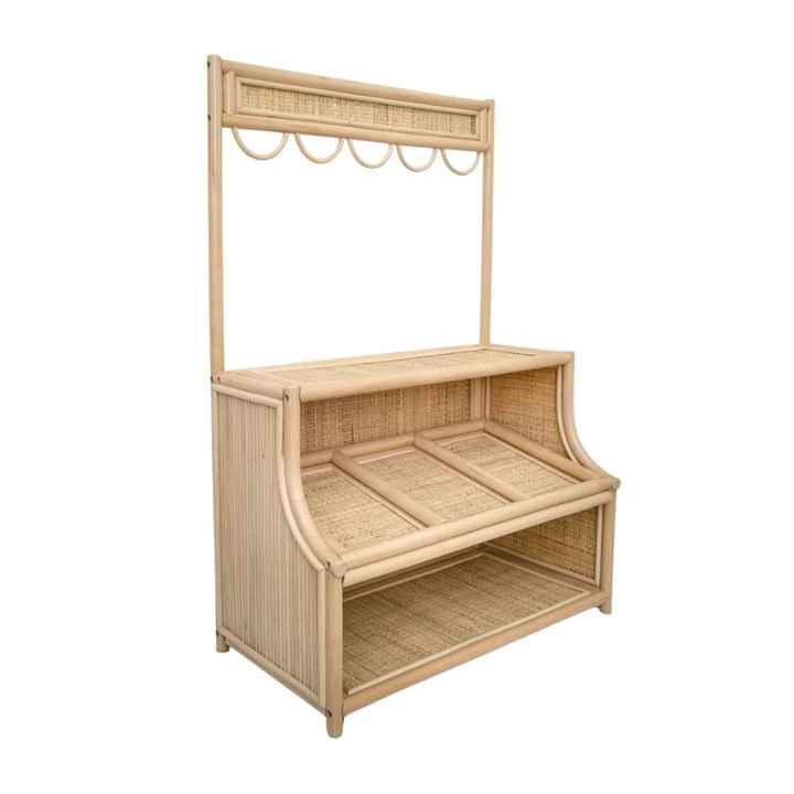 Puesto de mercado de mimbre hecho a mano de ratán natural para niños, tienda de juegos de mimbre