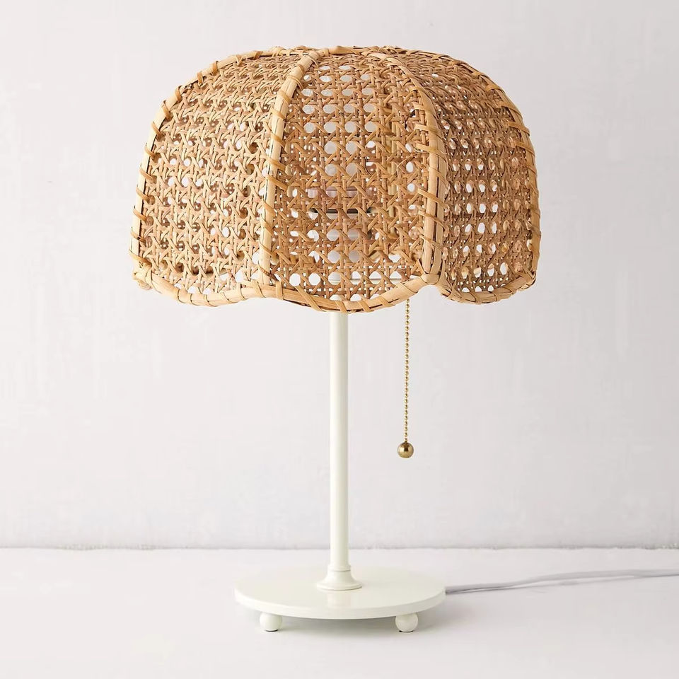 Lámpara de mesa de ratán hecha a mano de primera calidad con textura rústica natural perfecta para dormitorio, sala de estar y decoración del hogar de oficina