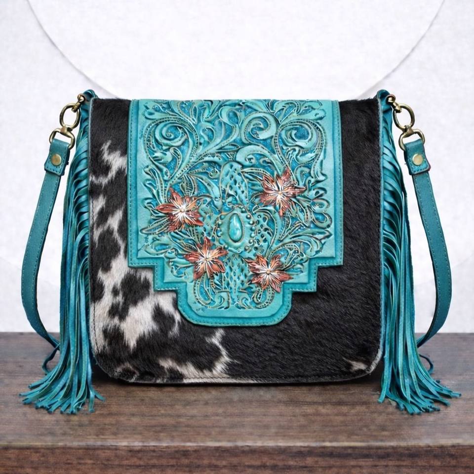 Nombre del producto:Bolso bandolera de piel de vacuno repujada con flecos