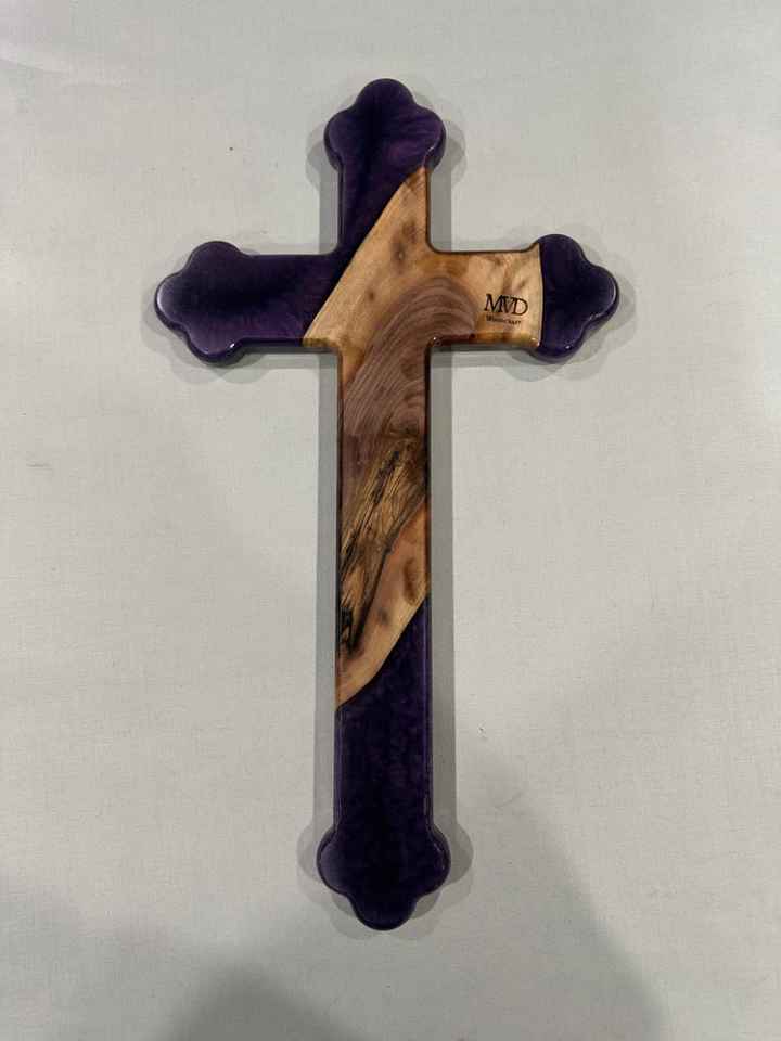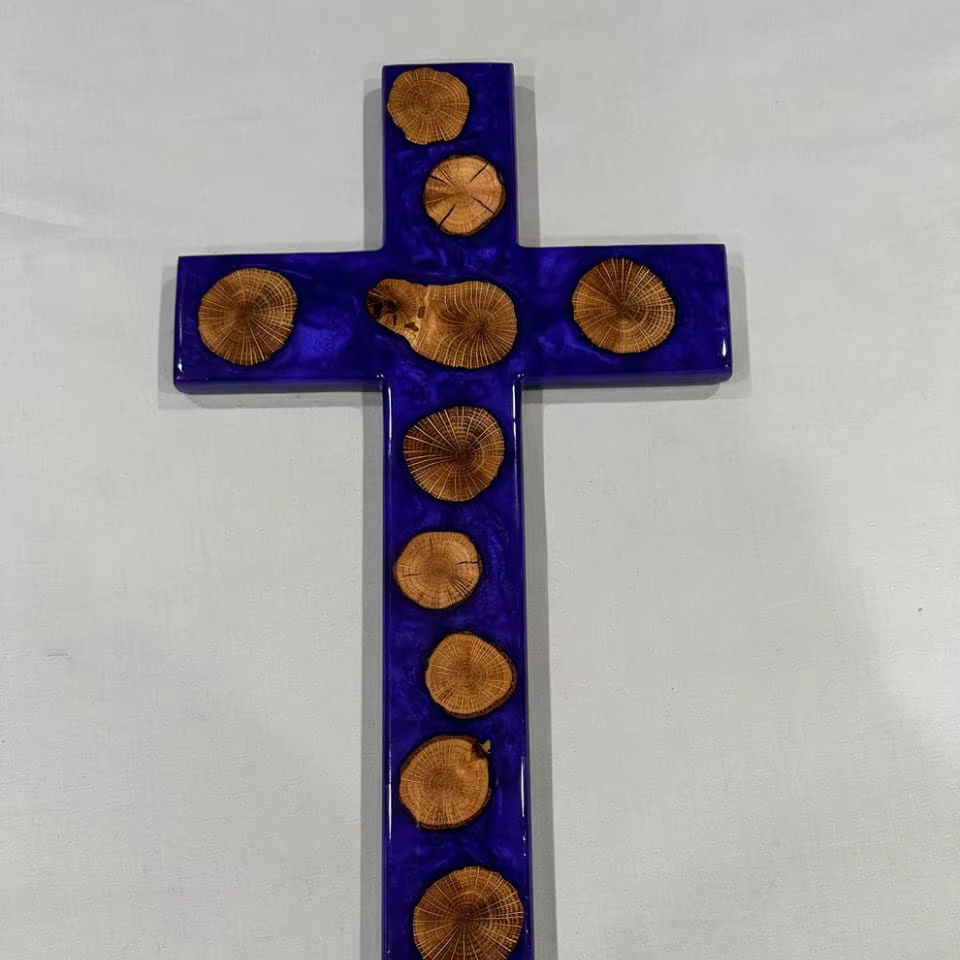 Cruz Decorativa de Pared Hecha a Mano con Madera y Resina Epoxi para Exhibición Religiosa Artística, Decoración Navideña del Hogar y Regalos