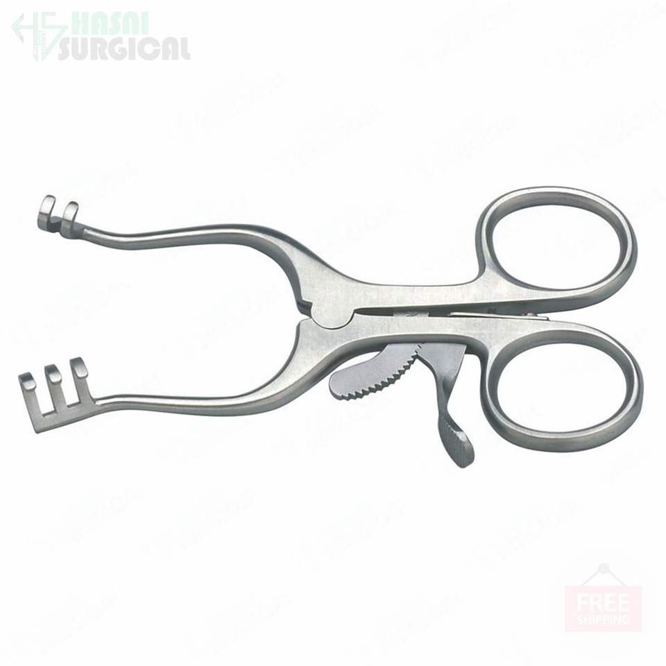 Instrumentos de alta calidad Premium Weitlaner Retractor 4,5 "Prong Quirúrgico Veterinario Auto Retención HERRAMIENTA DE MANO