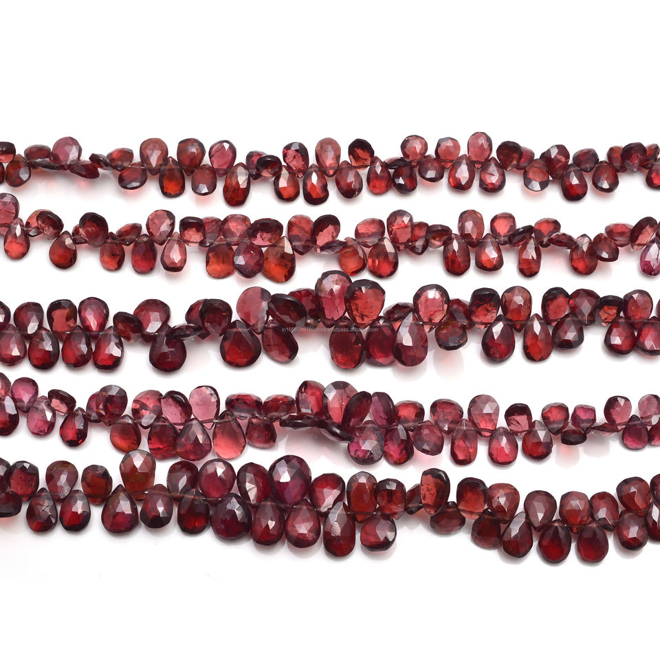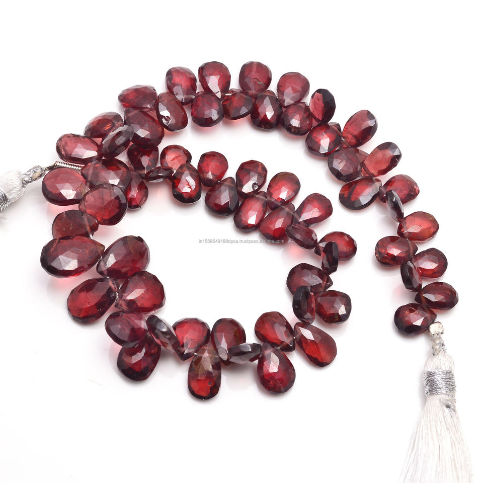 Collar de cuentas de granate rodolita natural de alta calidad, facetadas en forma de pera, color rojo, de 8 pulgadas, hecho a mano.