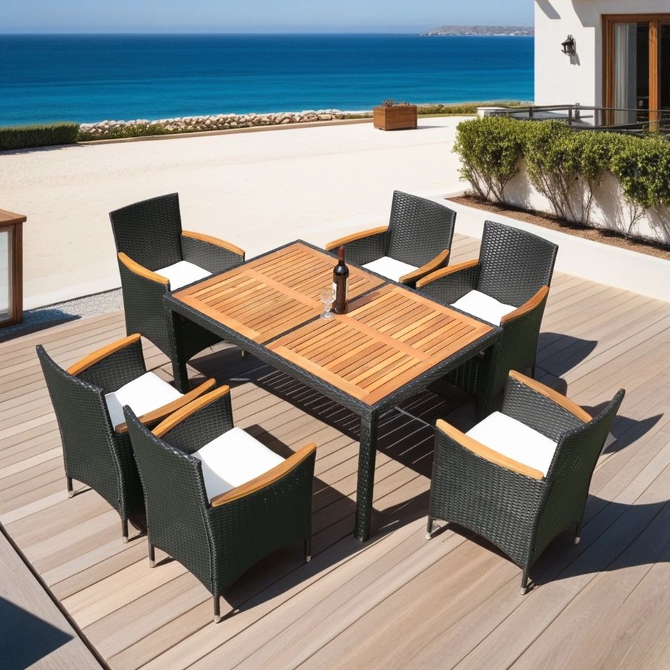 Juego de Comedor de Mimbre Sintético para Jardín IPRO Premium, 7 Piezas, Resistente a los Rayos UV, Lavable, para Todo Clima, 1.5 Años de Garantía