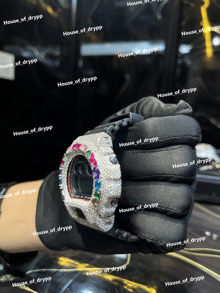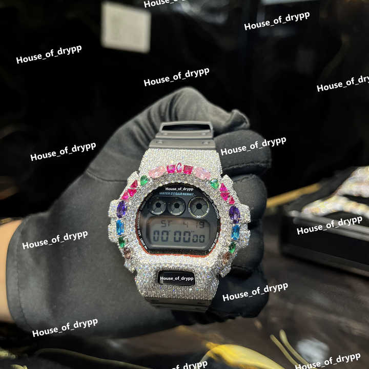 Reloj Digital Iced Out con Bisel de Diamantes Moissanite VVS, Resistente a Impactos, Pantalla Plateada, Reloj de Moda para Hombre