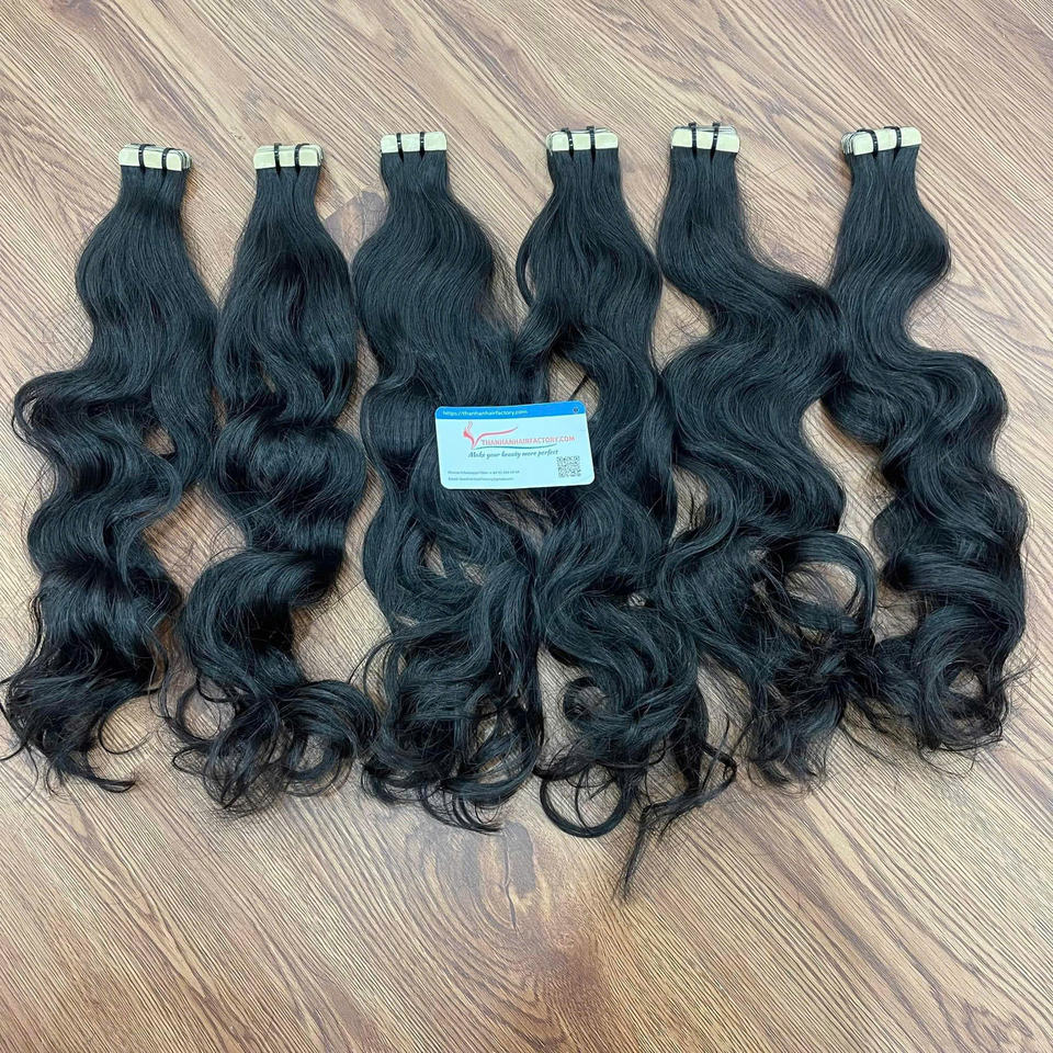 Extensiones de cabello con cinta adhesiva invisible premium, cabello humano vietnamita virgen, natural y suave.