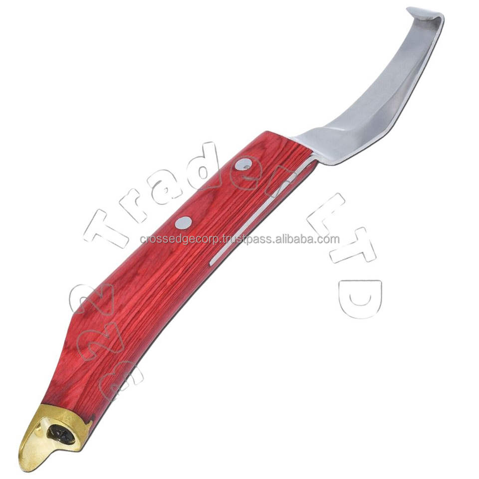Cuchillo japonés de acero inoxidable de bucle largo, cuchillo para pezuña con extremo de latón, cuchillo herrador con mango de madera liso para limpieza de pezuñas