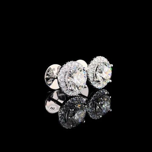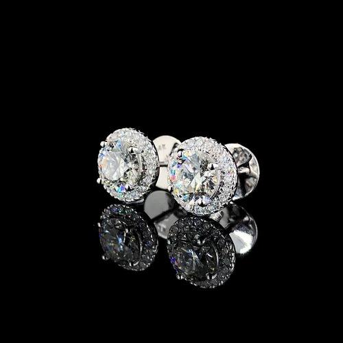 Premium Lab Grown DEF Diamond Round Halo Stud Pendientes CVD Crafted Brilliant Cut Party Wear Jewelry en caja de regalo