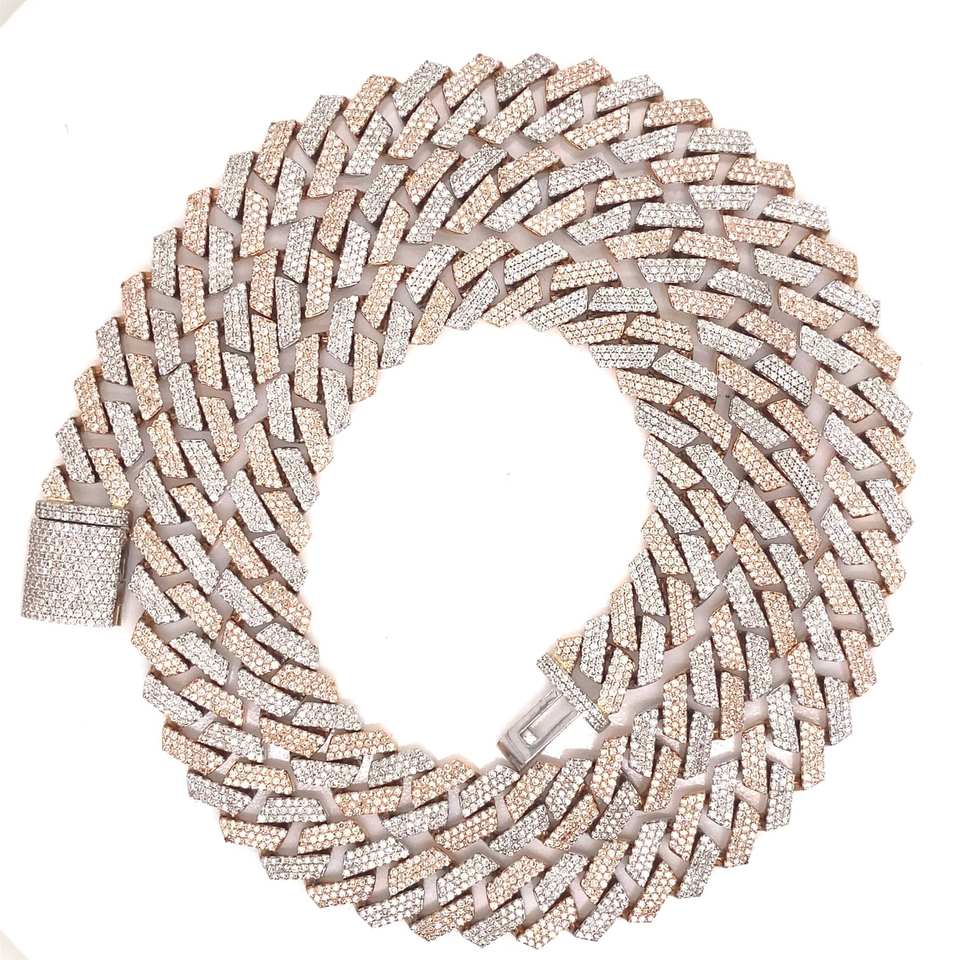 Cadena de Diamantes Cultivados en Laboratorio de Primera Calidad, Dos Tonos, Oro Rosa y Plata Blanca, Chapado en Oro, Estilo Hip Hop de Lujo