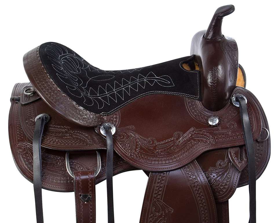 Conjunto de Silla de Montar Occidental de Cuero Genuino Premium, Duradero, con Herrajes de Acero Inoxidable (Tamaño del Asiento 14-18 Pulgadas), Varios Colores y Tamaños