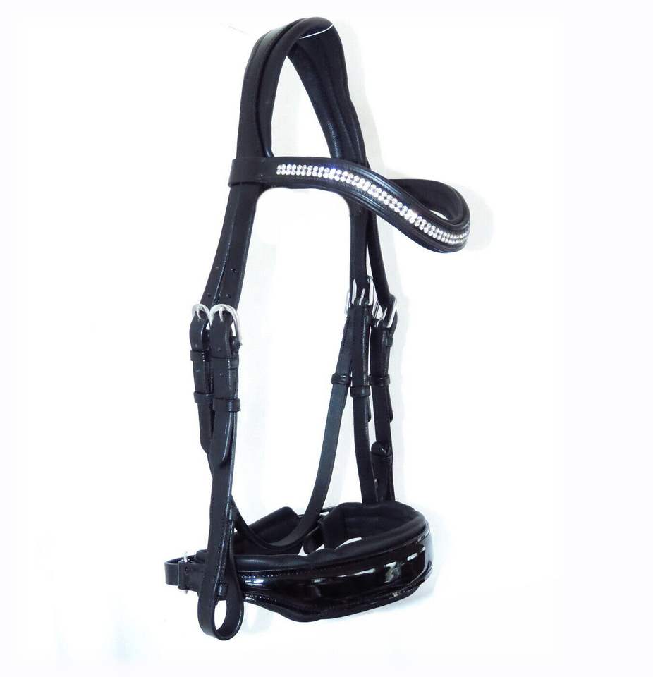 Brida anatómica de forma libre de cuero Premium para caballos Comfort Cut Away con GLOW Curve Crystal BLING Patent Made