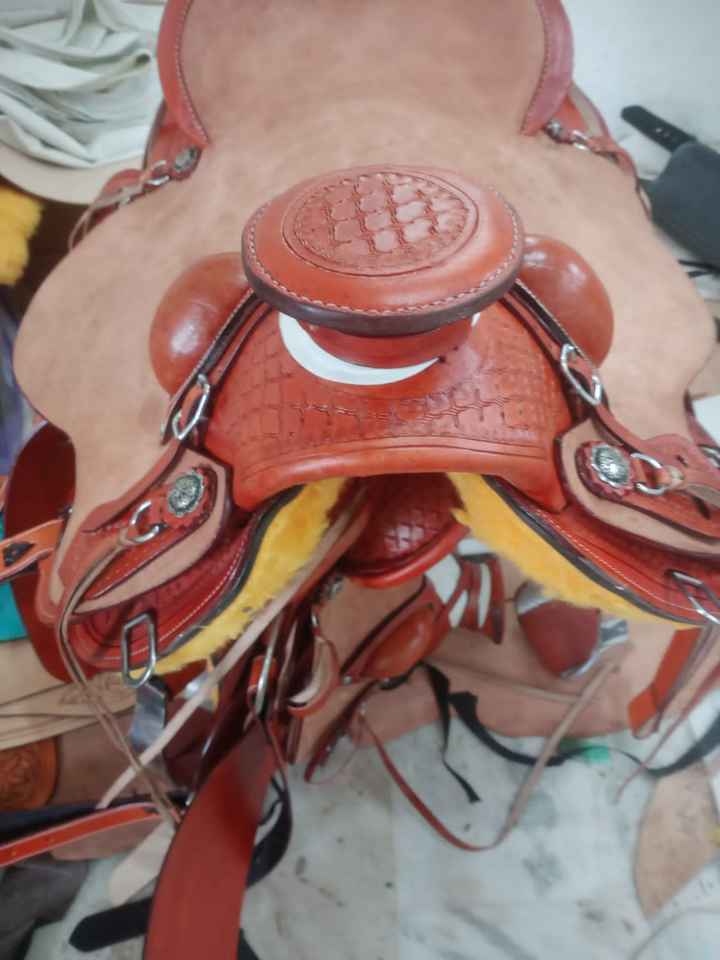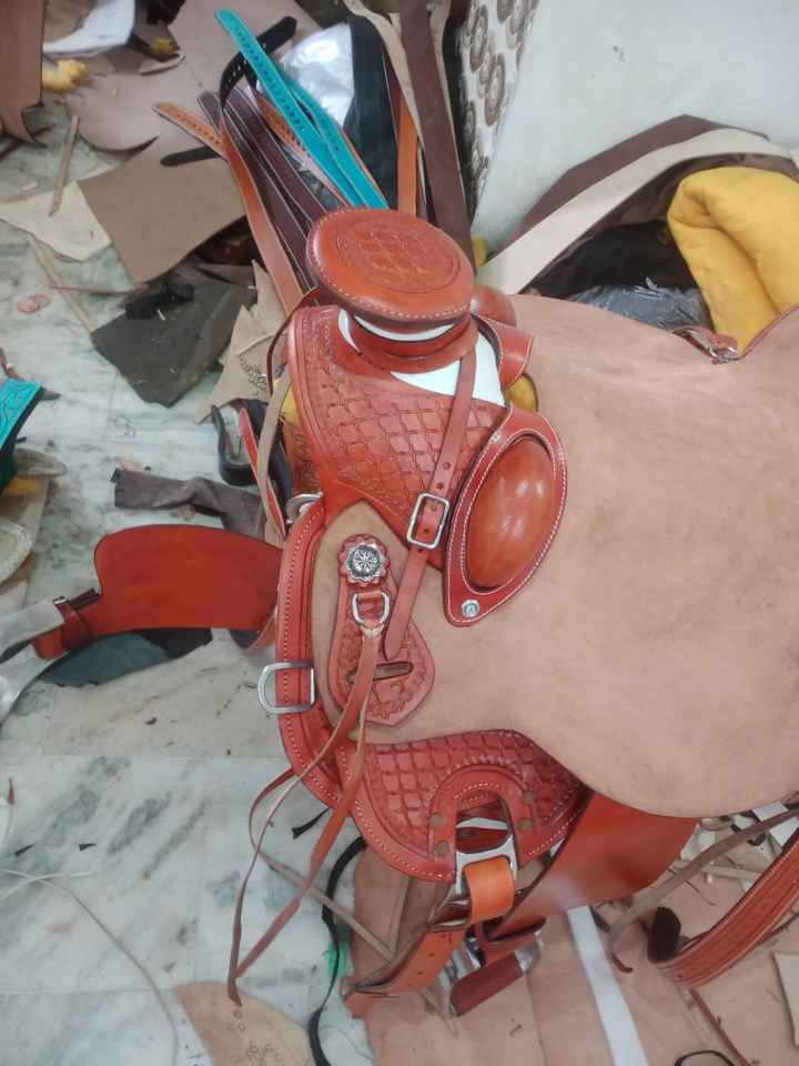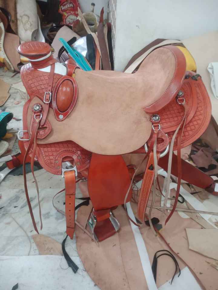 Silla de montar de cuero premium hecha a mano para carreras, estilo western e inglés, con estructura de madera/fibra de vidrio/plástico, personalización disponible