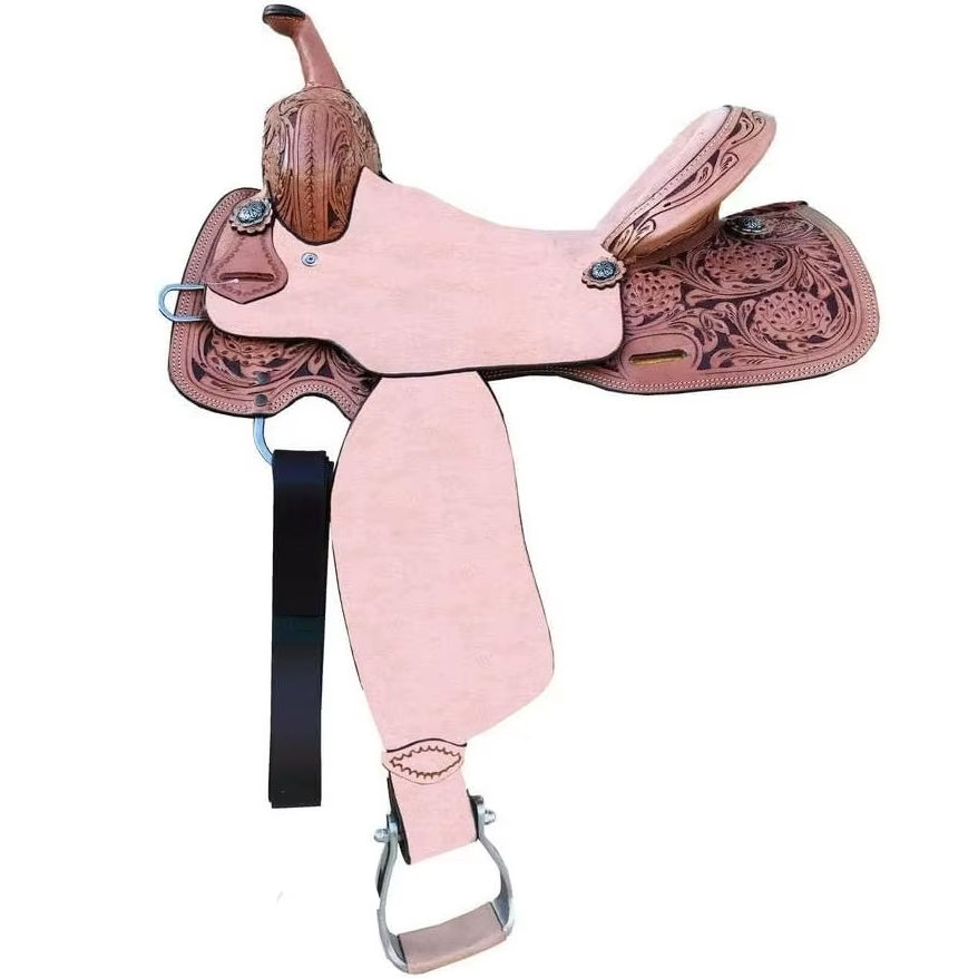 Sillín de carreras de barril occidental de cuero Premium con diseño tradicional personalizable para tachuela de entrenamiento Trail Riding Ranch