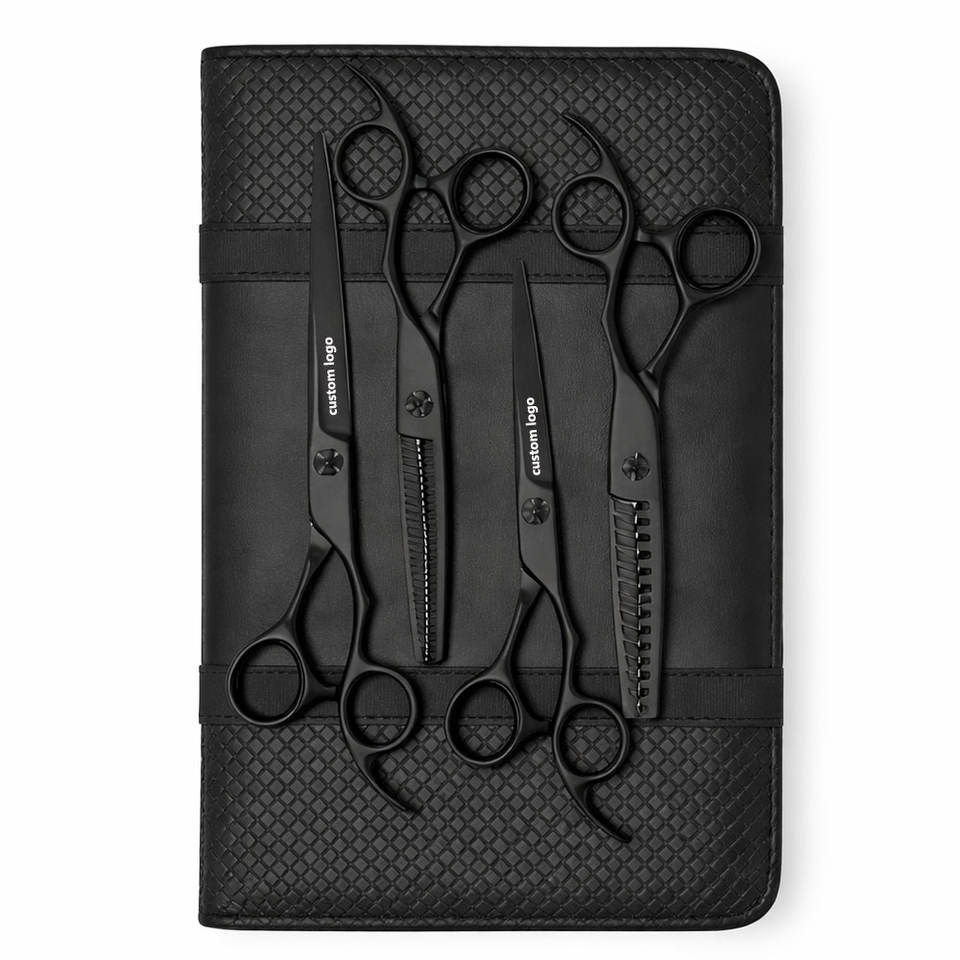 Juego de Tijeras Premium para Zurdos en Negro Mate, Diseño Ergonómico para Corte de Precisión con la Mano Izquierda