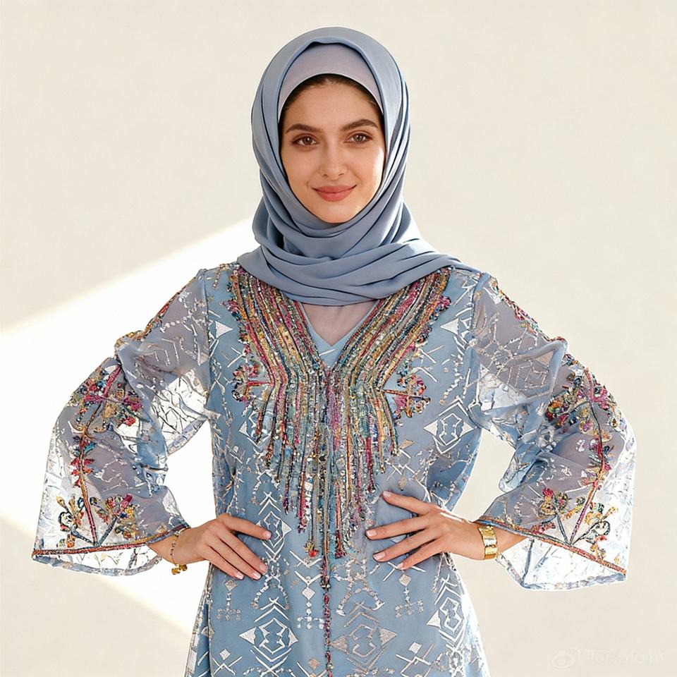 Vestido Abaya de Lujo con Bordado de Cuerda Larga Premium para Mujeres Musulmanas, Proveedor OEM Personalizado, Venta al por Mayor