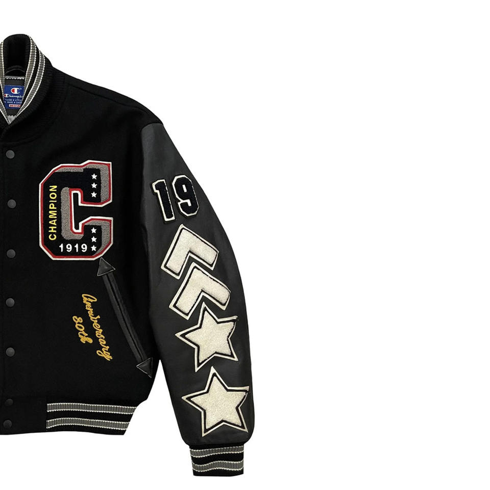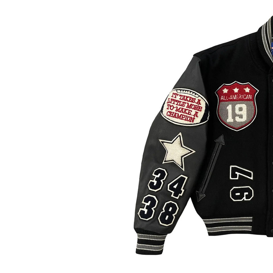 Chaqueta Varsity de Primera Calidad, Hecha a Medida, con Cuerpo de Lana de Alta Calidad, Mangas de Cuero, Parches de Chenilla y Bordado en Relieve, Estilo Béisbol