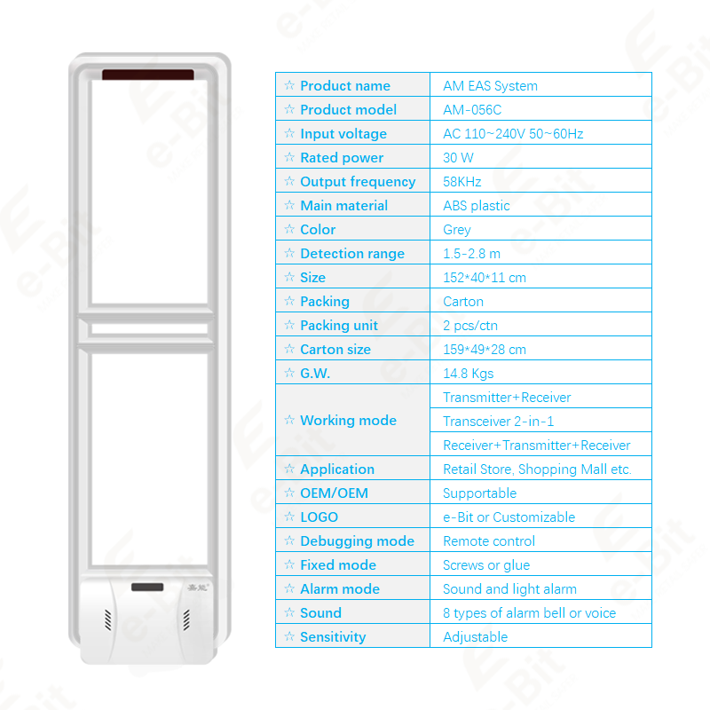 Sistemas EAS Antirrobo de Alta Gama con Baja Tasa de Falsas Alarmas, AM 58kHz, para Seguridad de Ropa, con Sensor de Puerta y Alarma