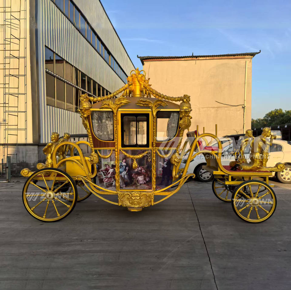 Premium Lujoso Golden Electric Classic Vintage Royal Carriage Carruaje de caballos de boda de lujo a la venta con luces