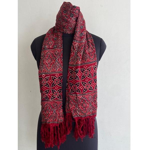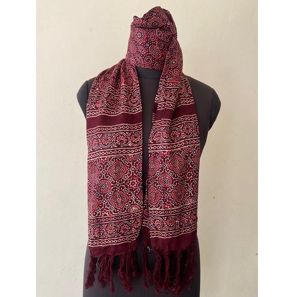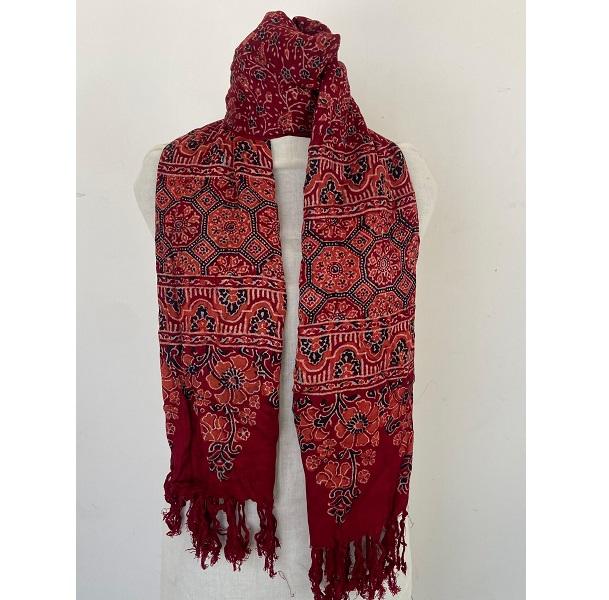 Estola de impresión Ajrakh de bloque de mano Ryon suave de lujo Premium diseñada con detalles hechos a mano lavable a máquina adecuado