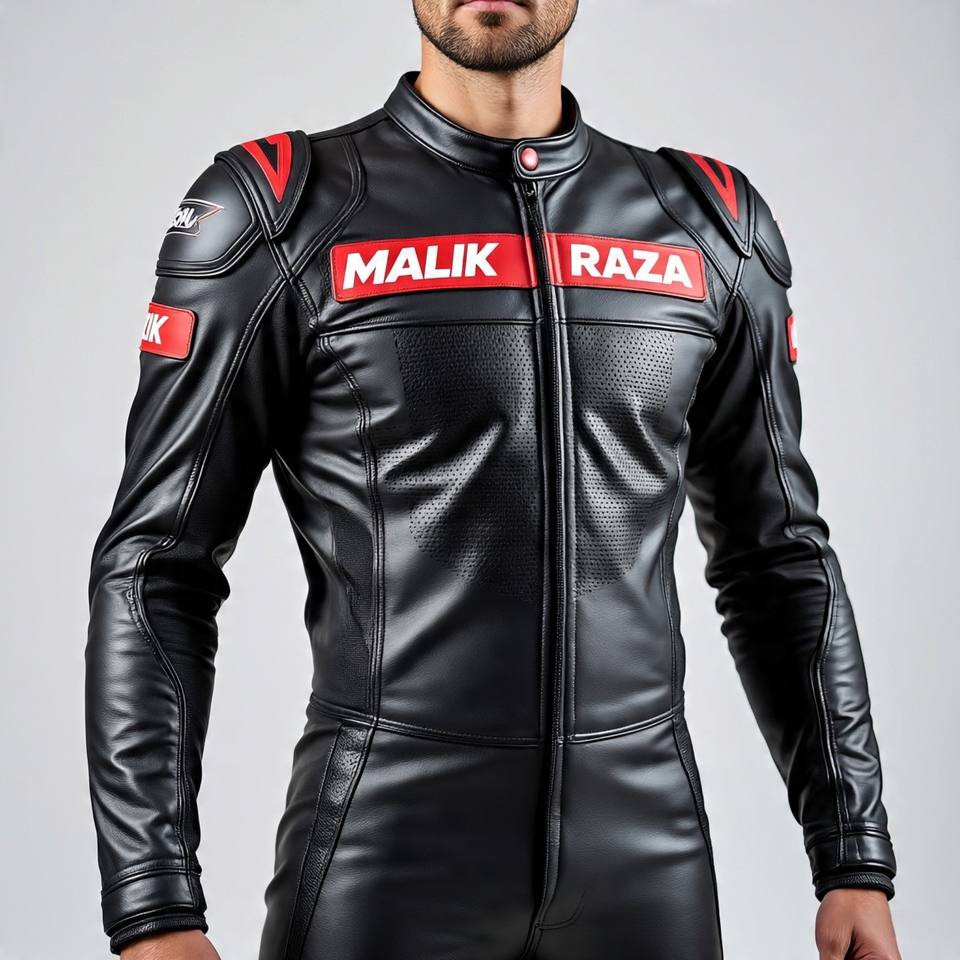 Traje de moto de cuero de vaca Premium MALIK RAZA Top Grain | Joroba extraíble y deslizadores externos